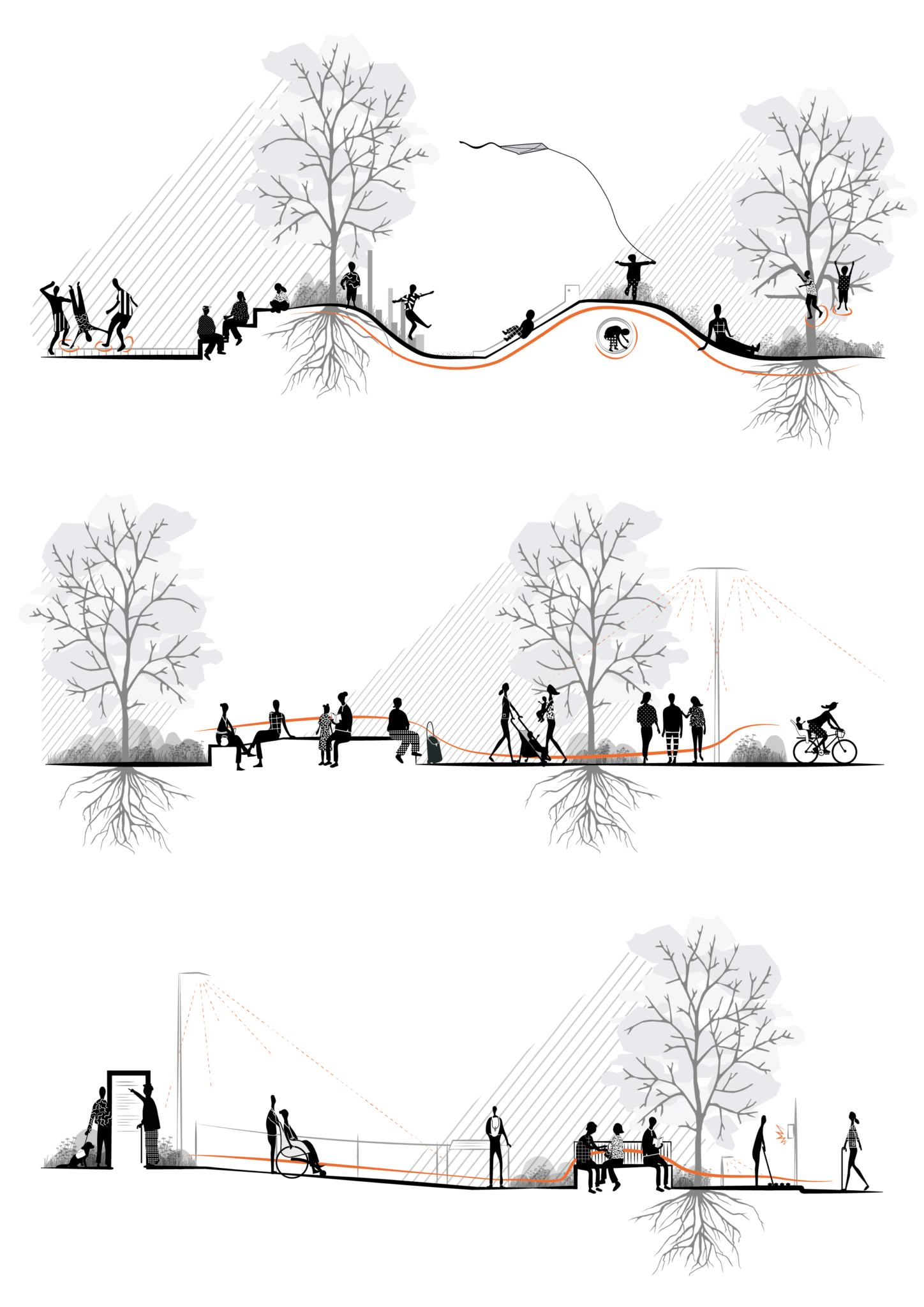 Nous proposons des récits partagés sur les territoires pour témoigner des changements à venir de manière positive. Cette narration graphique convoque l’imaginaire et le sensible pour embarquer le plus grand nombre dans l’aventure collective proposée. Notre boîte à outils créative et collaborative : à la croisée du stylo, du pixel et de la pelle (scénarii, entretiens, vidéos, cartes en ligne) favorise l’appropriation sur le temps long et permet de passer le relais.