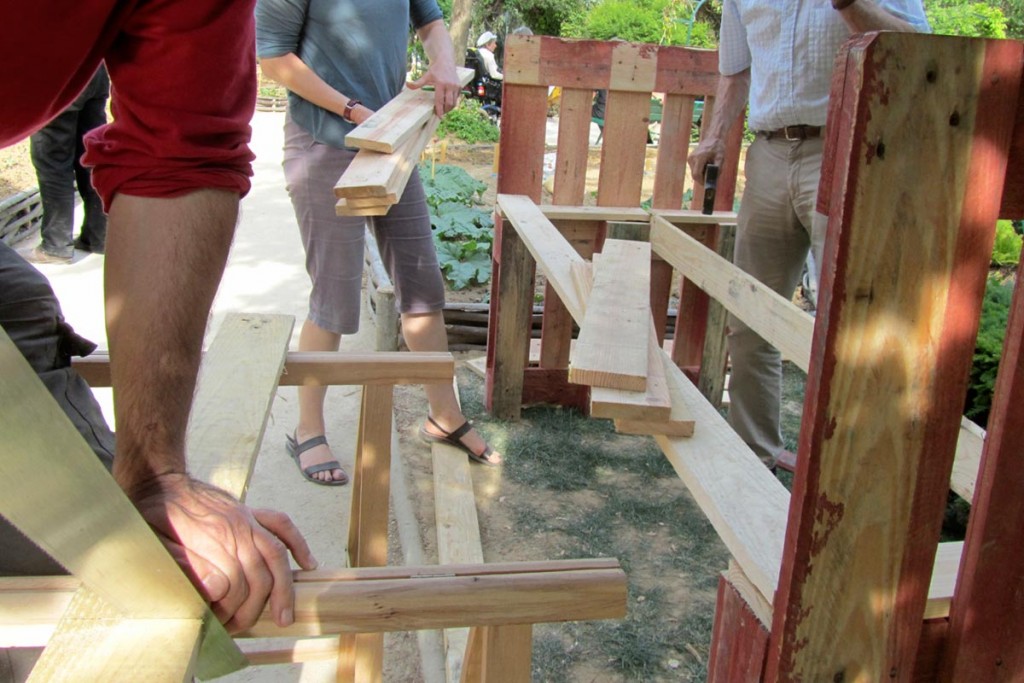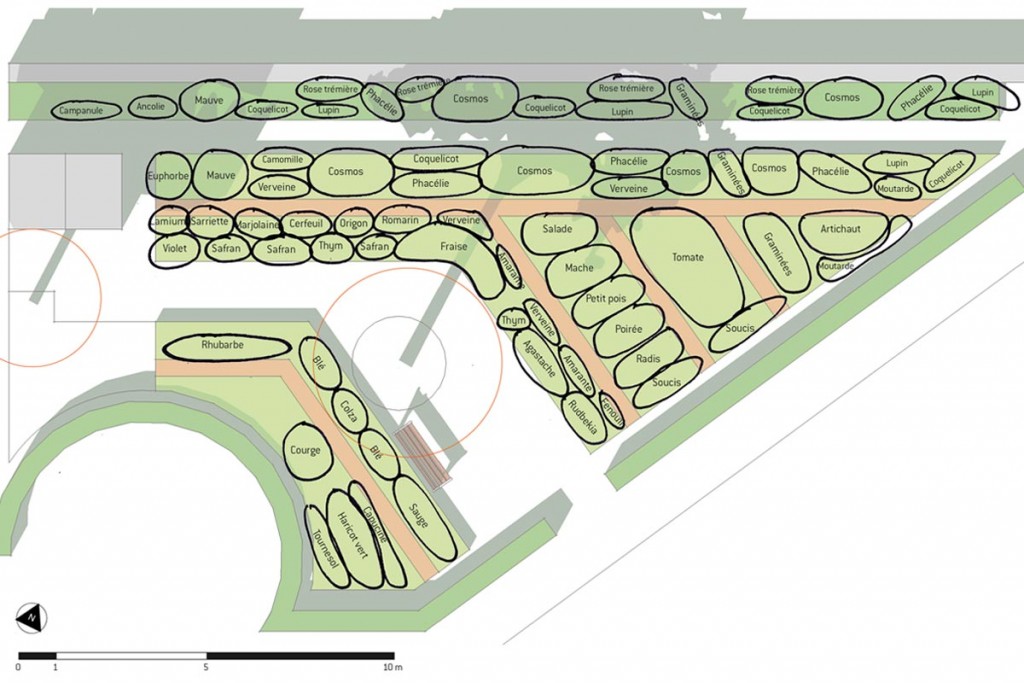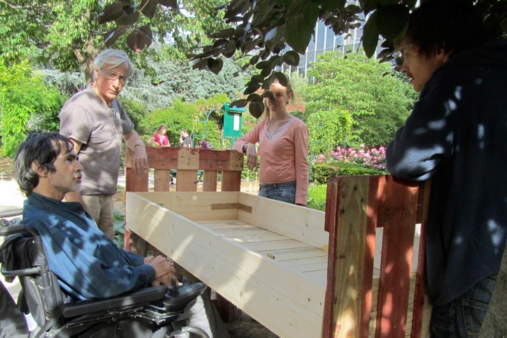 Le jardin partagé croulebarbe est situé dans le jardin public René Legall. Il a été initié par plusieurs habitants du quartier, regroupés en association, désireux de créer un lieu de vie et d’expérimentation autour de la culture de la terre. Nous avons rejoint l’association afin de l’accompagner dans son développement. L’accessibilité des usagers au cœur du projet nous a amené à construire du mobilier adaptée pour des personnes à mobilité réduite. Nous avons initié par ailleurs une recherche autour de plantes sensorielles et tinctoriales, en mémoire de l’industrie textile qui animait le quartier, lorsque la Bièvre traversait encore Paris.