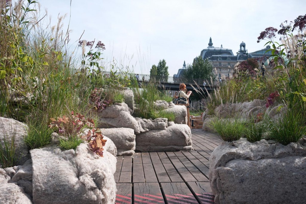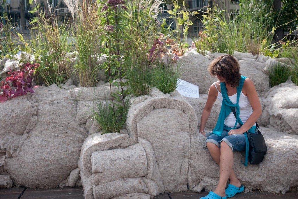 The campaign for wool est un événement international qui célèbre la créativité et l’innovation autour de l’usage de la laine. A l’occasion de la première édition française, nous avons été invité a concevoir un jardin éphémère sur deux sites parisiens : la place Maurice Barrès et les Berges de Seine. Inspirés par la transhumance des moutons, le jardin évoque les paysages d’estive. Composé de ballots de paille, de laine d’isolation, de laine brute et de graminées, le jardin permet de découvrir au détour d’un parcours les nombreuses qualités de cette fibre naturelle. Suite à l’installation, tous les matériaux ont été recyclés auprès d’associations locales et de jardins partagés.